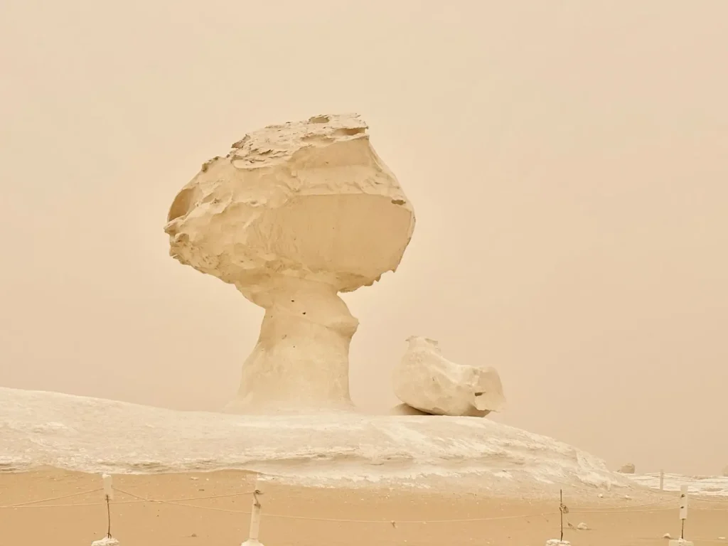 The White Desert: The White Desert is a wonder of nature that goes on as far as the eye can see, with an infinite array of sculpted shapes that seem to be from another planet. This is an ancient seabed that is approximately 50 million years old. The calcite limestone formations stand as a reminder of the ancient shallow sea.