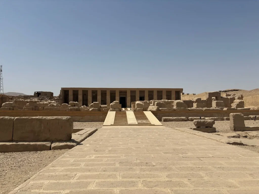 Osirion: our group will also see the Osirion, most ancient temple to Osiris, which is sunken into the ground behind the main temple. This is where the Head of Osiris was believed to have been found. Here you can see the Flower of Life on one of the columns. The sacred waters of the Osireion spring up from underground rivers connected to the Nile. The design of the temple has a connection to the Temple of the Sphinx.